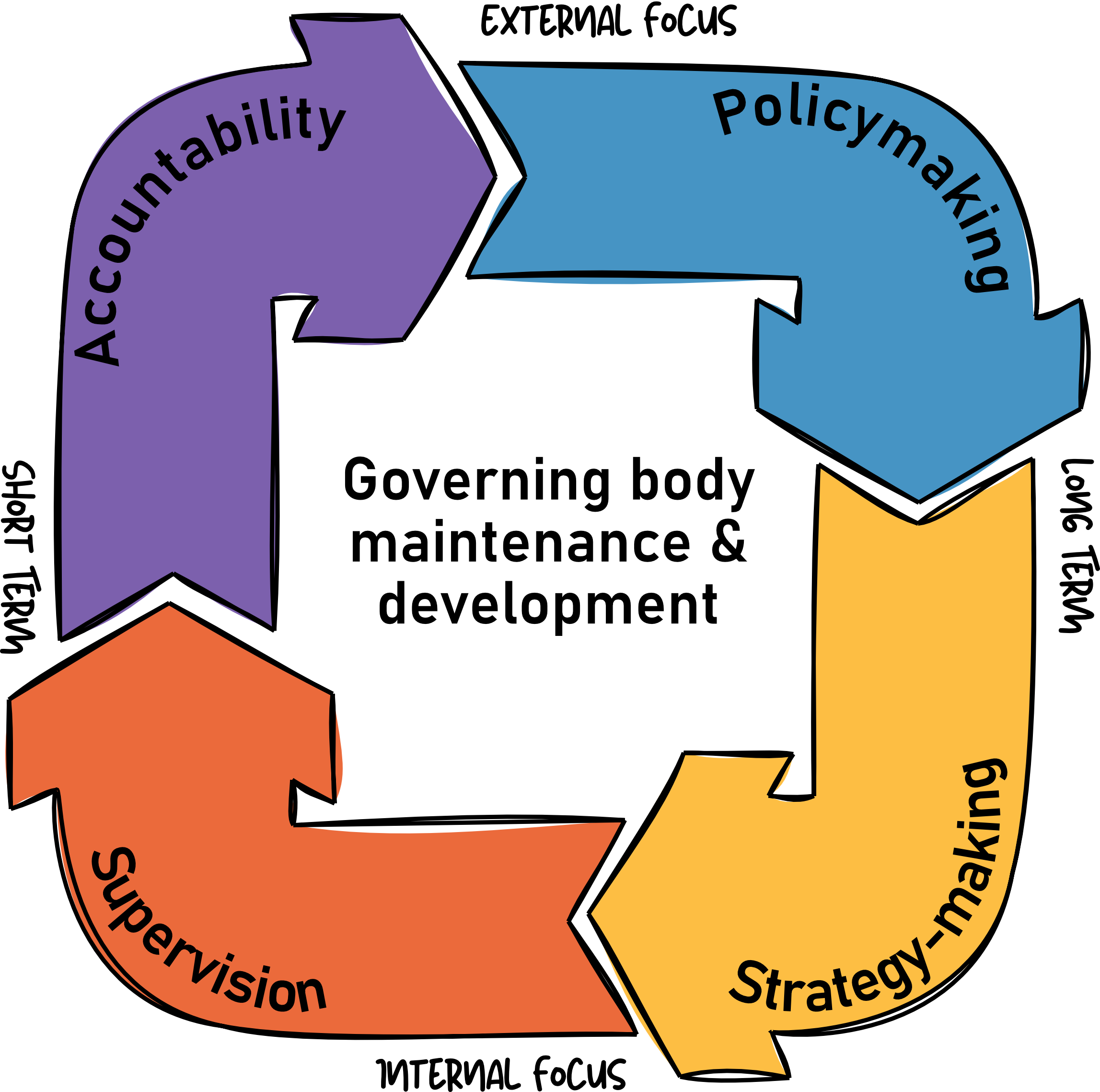 Governance is the legal authority of a board to establish policies that will affect the life and work of the organization while holding the board accountable for the outcome of such decisions. The systems and processes concerned with ensuring the overall direction, effectiveness, supervision and accountability of an organization